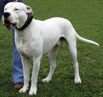 Charakter : starker Kampftrieb Körper : großer quadratisch und kräftig gebauter Hund Haarkleid : auschließlich weiß mit kurzem Haar